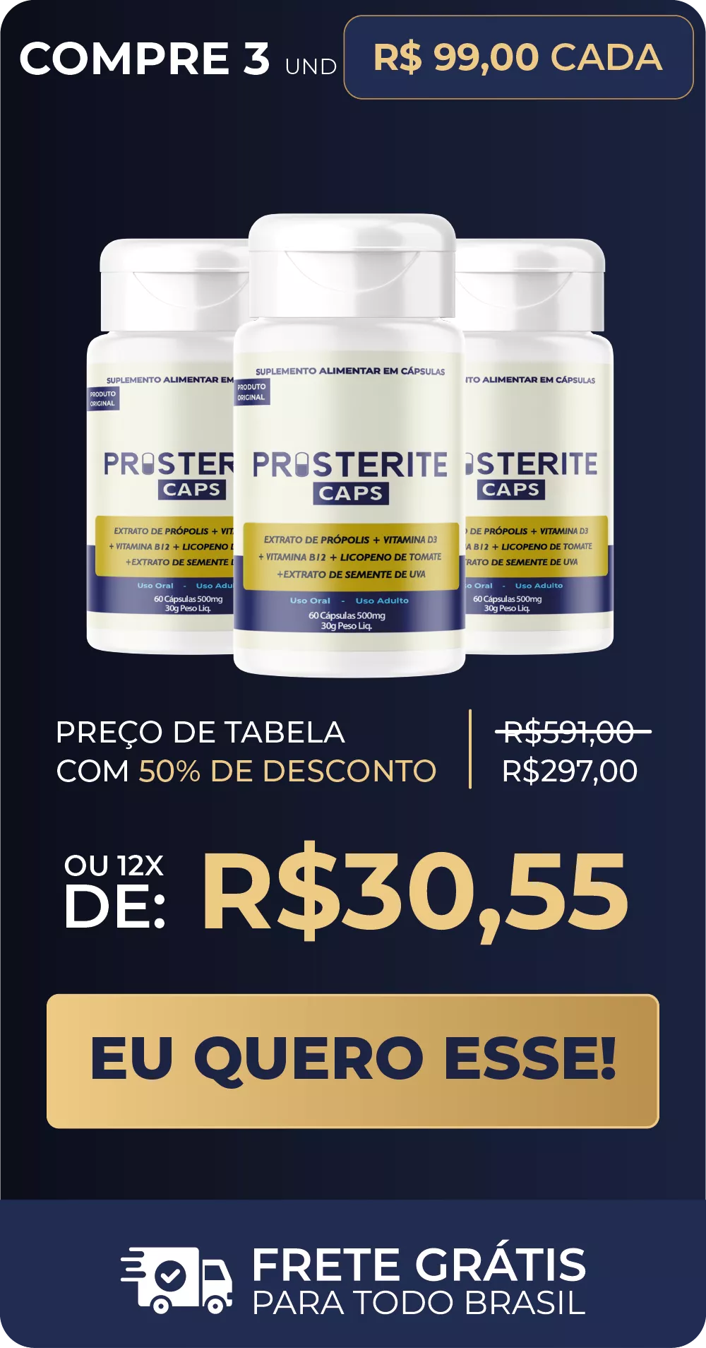 Prosterite Caps não apenas melhora o conforto urinário, mas também auxilia na prevenção de complicações mais graves, garantindo uma próstata saudável e equilibrada.